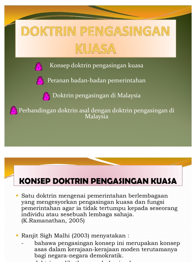 Pemusatan kuasa pada sesuatu badan boleh menyebabkan pertindihan kuasa sekali gus meningkatkan jenayah korupsi berlaku. 05 Konsep Doktrin Pengasingan Kuasa Menurut Undang-Undang Sivil Dan Islam PDF. View konsep pengasingan kuasadoc from HISTORY 376 at University of Maryland University College.